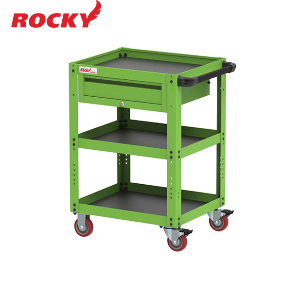 รถเข็นเก็บเครื่องมือช่าง แบรนด์ ROCKY ผลิตจากเหล็กหนาเกรดอุตสาหกรรม เคลือบผิวพรีเมียมป้องกันสนิมและรอยขีดข่วน ทำให้ทนต่อแรงกระแทกและเหมาะกับสภาพแวดล้อมที่ต้องใช้งานหนัก เช่น อู่ซ่อมรถ โรงงานผลิต และไซต์ก่อสร้าง การออกแบบที่มั่นคงช่วยให้จัดเก็บเครื่องมือได้อย่างปลอดภัยและยืดอายุการใช้งาน